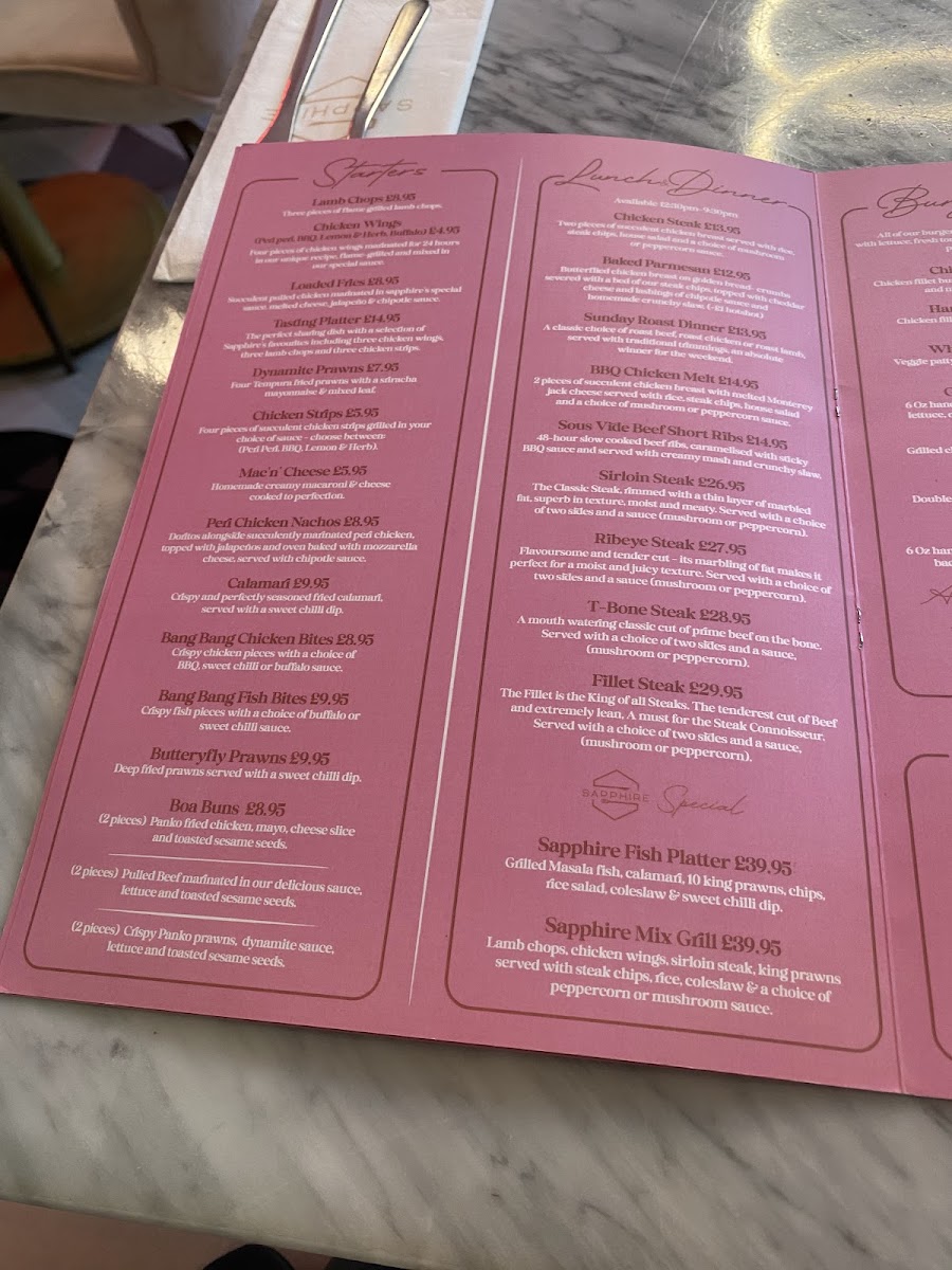 One of the strongest aspects of the Sapphire Menu is its consistency. On multiple visits, I’ve found the quality of the food and service to remain reliably high, which speaks volumes in a competitive dining market. While prices are mid-range, the experience feels premium, offering great value for what you receive.
